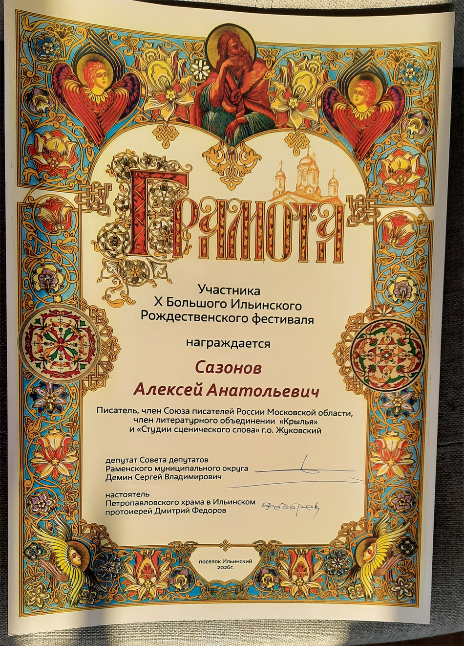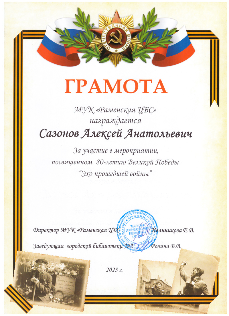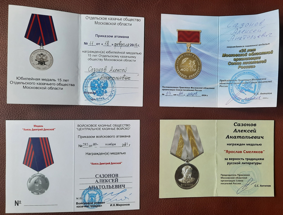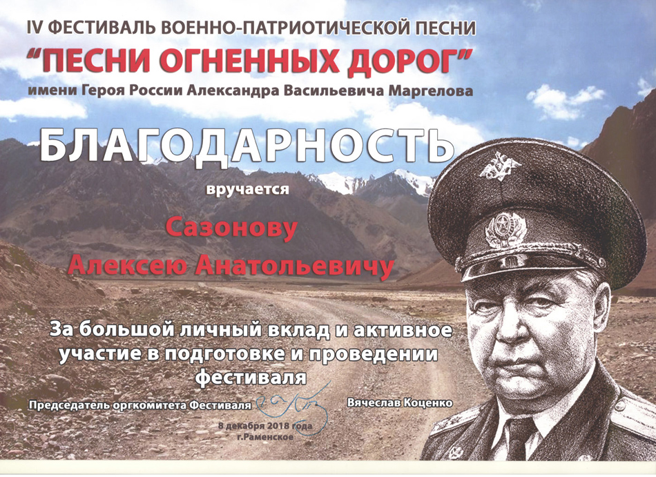 Благодарственные письма и награды Сазонова Алексея Анатольевича