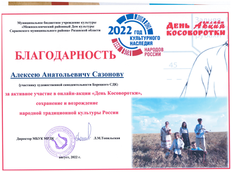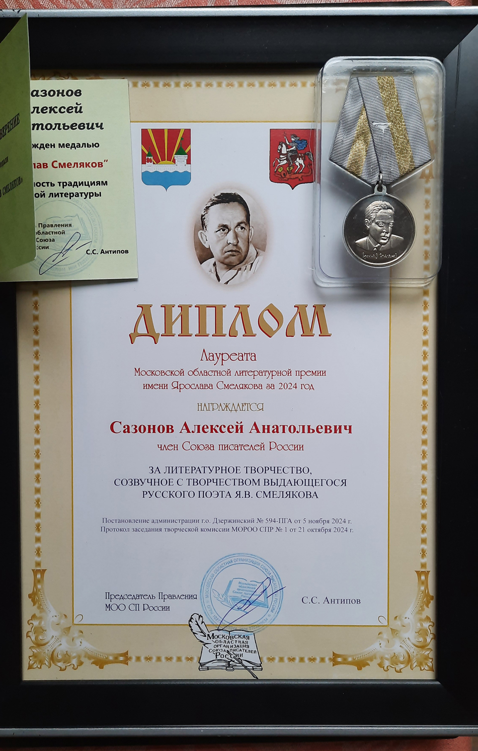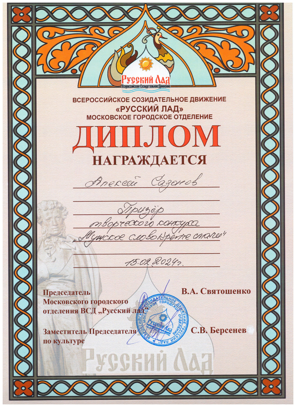 Благодарственные письма и награды Сазонова Алексея Анатольевича
